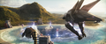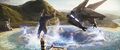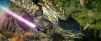 After Godzilla attacked the fleet transporting Kong to Antarctica, leaving the Titan badly beaten and most of the ships in ruins, helicopters transported him the rest of the way. The HEAVs followed him into a Vile Vortex provided access to the Hollow Earth. After passing through it, their engines briefly lost power, but restarted just in time to avoid crashing. As they followed Kong, a Warbat ambushed one of the HEAVs and bit down on it, destroying it instantly. Kong grabbed it before it could attack the ship carrying Lind, Andrews, Jia, and Simmons, and quickly killed it. When a second Warbat threatened to suffocate him with its hood, Lind ordered his HEAV to fire a barrage of missiles at it. Pained, it loosened its grip, allowed Kong to recover and beat it to death.