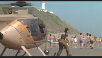 At least one Hughes 500E existed in G-Force's inventory by 1996. Following the destruction of Baas Island as a result of Godzilla's impending meltdown, Miki Saegusa piloted the helicopter on a mission to locate Godzilla Junior, who was traveling north towards his nest site on Adonoa Island. Later, during Godzilla and Junior's final battle with Destoroyah, Miki and Meru Ozawa piloted the chopper over the battlefield in time to witness Destoroyah drop Junior onto Ariake Coliseum, mortally wounding him. After landing the helicopter, Miki and Meru ran towards Junior, but Destoroyah blasted him with his Micro-Oxygen Ray, killing him and destroying the helicopter.