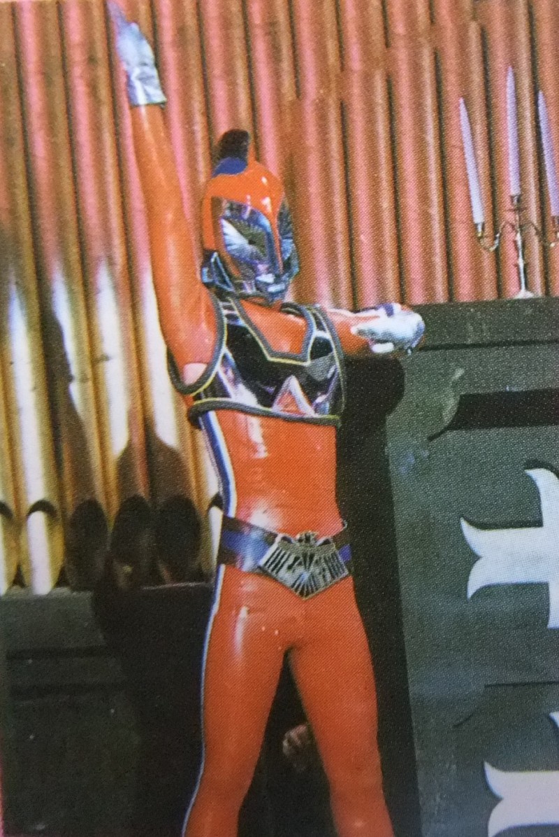 When in his Human No. 2 form, he has an Ultraman-like head which is covered by a large spiked helmet. Almost all of his body is red besides small blue and white stripes on his legs. Junjiro also wears silver gloves on both his hands, armor on his chest, a belt and silver anklets.