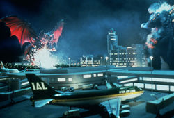 Flying out from the Haneda Airport in Tokyo, Japan, the 747s are disturbed as the battle between Godzilla and Destoroyah continues. Some of the planes are destroyed by beams shot by both monsters, and all flights stop for the time being after Godzilla is dragged along the Tarmac by Destoroyah.