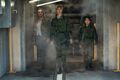 Deaf actress Kaylee Hottle was cast as Jia in her film debut. She named the scene in which Godzilla nearly sinks the freighter transporting Kong, causing the bridge to fill with water, as her favorite to film, and acting opposite a green screen representing Kong as one of her greatest challenges.[3] Numerous members of the cast and crew, including Rebecca Hall and Alexander Skarsgård, learned American Sign Language to communicate with her during production.[4]