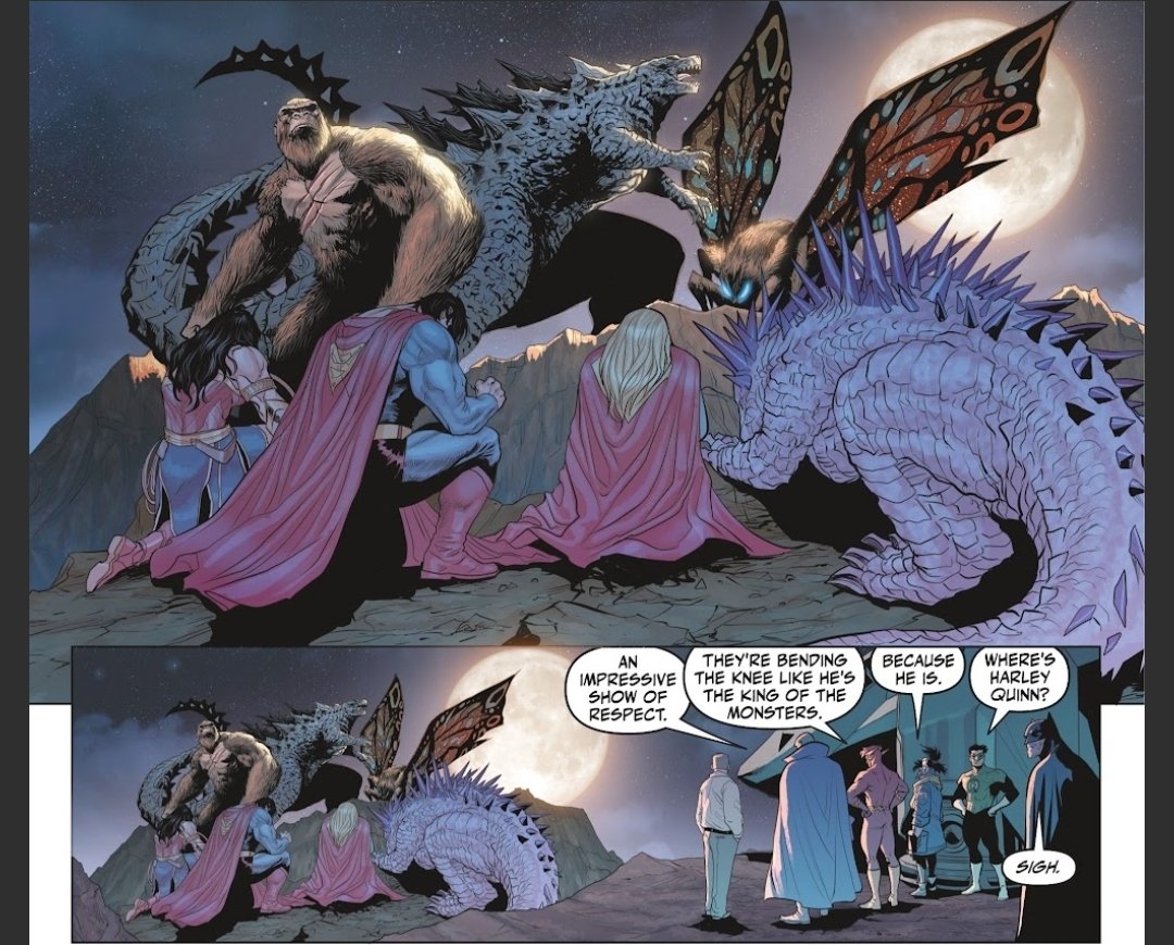 This is it! The big finale! Godzilla, Kong and the Justice League versus King Ghidorah, Rodan and the other titans. The question is...whose side is Mothra on?[1]
