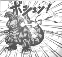 KIDS serves a near-identical role in the manga adaptation of the 1991 movie, although two additional scenes more heavily feature the craft. In the first expanded scene, M11 used the craft to fend off the Godzillasaurus when he confronted the exploration party on Lagos Island. After firing upon the creature to get him to back away from Emmy and Kenichiro Terasawa, M11 hit him with the teleportation dish's ray.