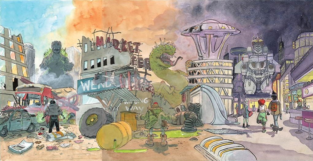 The Kai-Sei Era is set in an alternate 2025, featuring a world ravaged by the kaiju and fundamentally altered by Kai-Sei. Each series focuses on a different facet of this universe, from the American division of G-Force and its efforts to defeat the kaiju in Godzilla, to a half-human half-kaiju mutant's efforts to get two children out of a quarantined and irradiated wasteland in Godzilla: Escape the Deadzone, to adventures beyond the Earth aboard the spacefaring S.S. Mechagodzilla in Starship Godzilla. The origins of the setting will be explored in The Horror of Godzilla, recounting Godzilla's first attack in 1954.