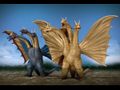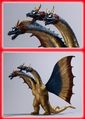 This set features two figures, the traditional golden King Ghidorah and the original blue design with rainbow-colored wings. Both figures' necks, heads, and wings can be replaced to mix and match. Also, the set includes extra necks and heads to recreate the poster design for King Ghidorah. Both figures stand 24 centimeters (roughly 9.5 inches) tall and 34 centimeters (approximately 13 inches) wide. This set was released in December 2019.