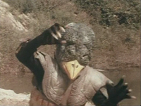 Like many other of the monsters to appear in Godman, Kappalage reappeared in the Greenman series. He appeared in episode 42 and was the forty-third kaiju to battle Greenman. In this series, Kappalge was created by Tonchiki, a subordinate of the demon king Maoh, for the sole purpose of retrieving the blood of children to free Maoh from his imprisonment in the Underworld. In the show, the monster was also changed to being an aquatic creature despite still being a bird in appearance. It is deployed in to a small lake where four small children had been net fishing. The water begins to erupt into foam when one of the boys dips his net in to it, and Kappalge bursts from the water. They are chased but manage to duck behind a bush and use a Green Call to summon Greenman. The hero quickly beats Kappalge in to submission who loses consciousness, but Tonchiki casts a spell on him to regain composure and use its trump card ability. The monster creates a bubble of foam and liquid which pops on contact with Greenman, blinding him. He repeats this ability once more, covering Greenman's eyes with a viscous liquid. Blinded, Greenman is easily beaten down but the children soon use two Green Calls to repair him and remove the obstruction. Greenman then ultimately sends one of the bubbles back at Kappalge's face using the Greenman Stick's Stick Beam ability, and destroys him using his Mouth Beam.