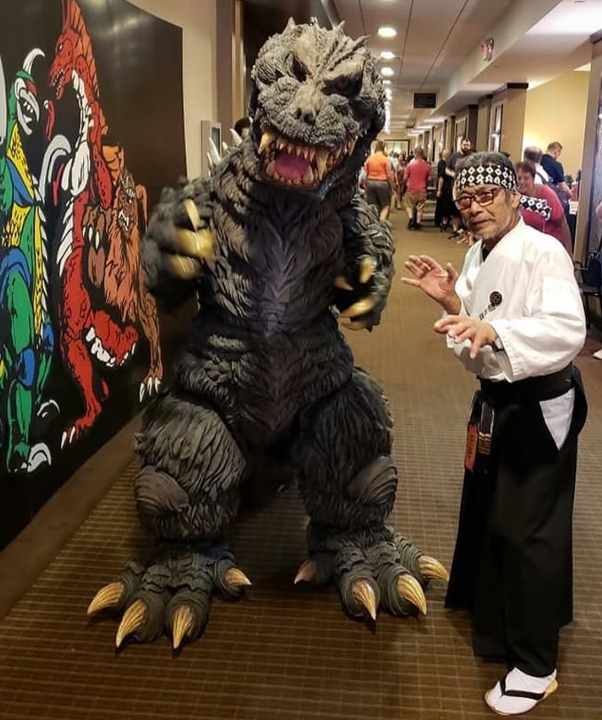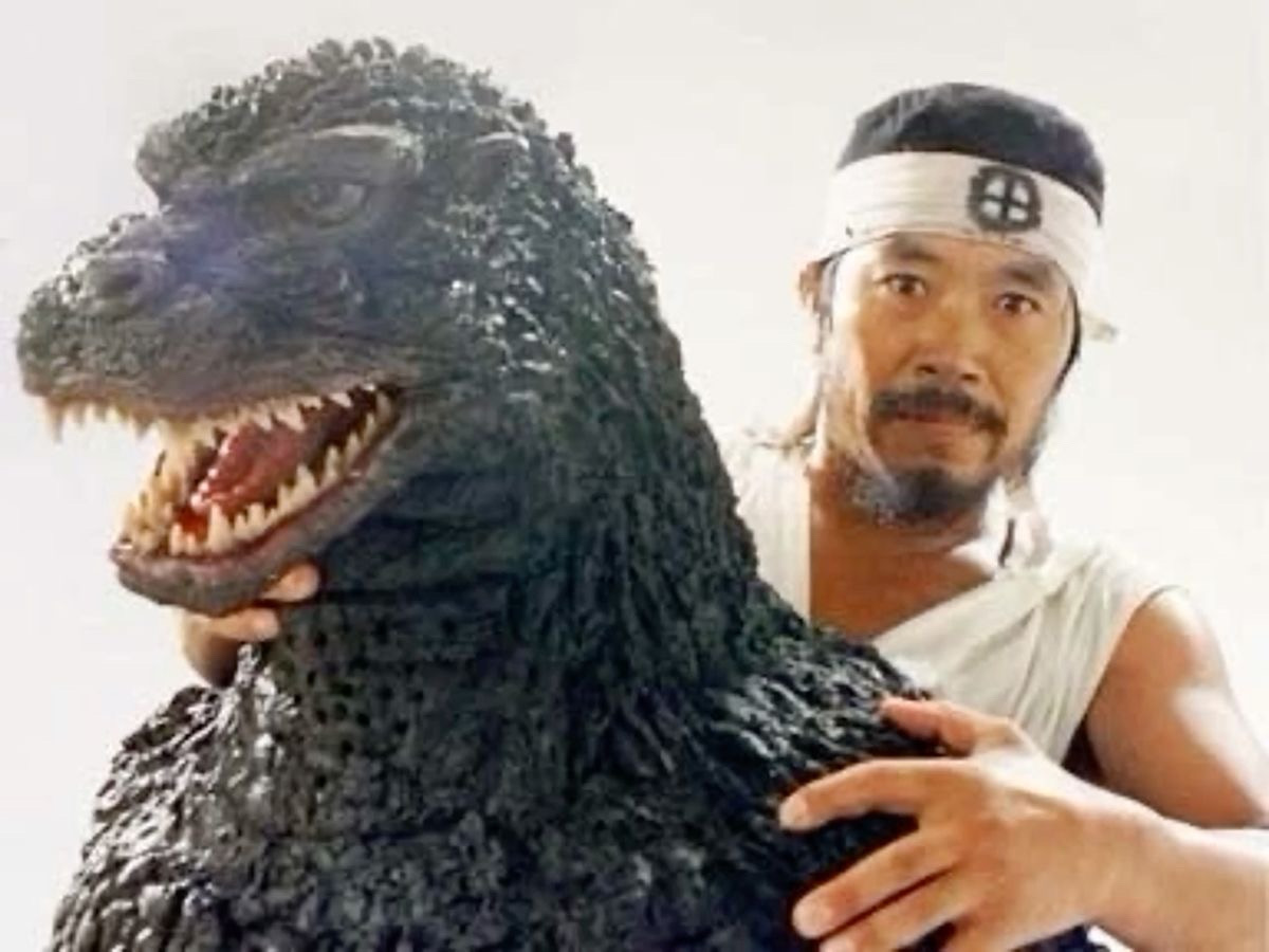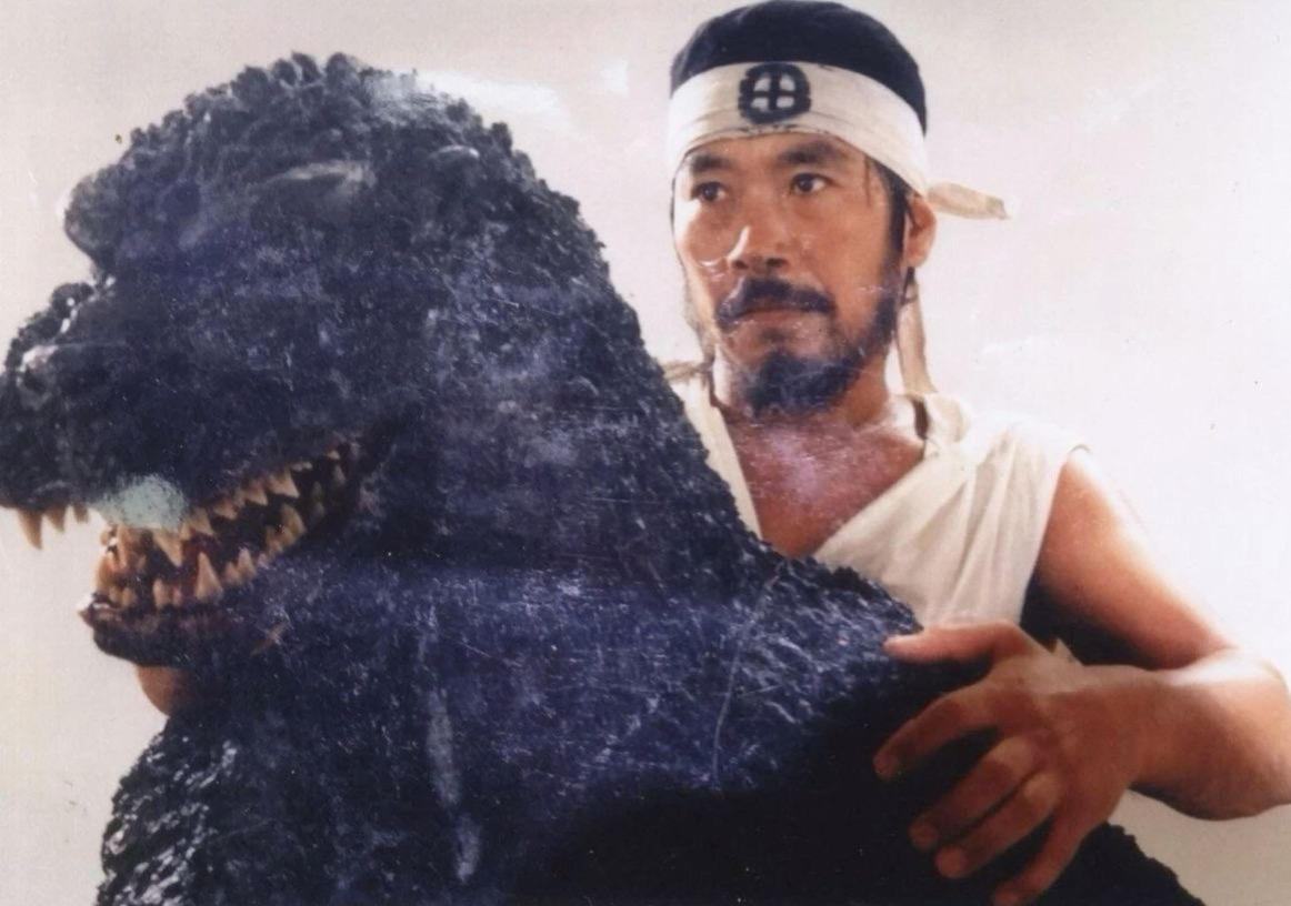 Kenpachiro Satsuma alongside Showa Godzilla suit actor Haruo Nakajima