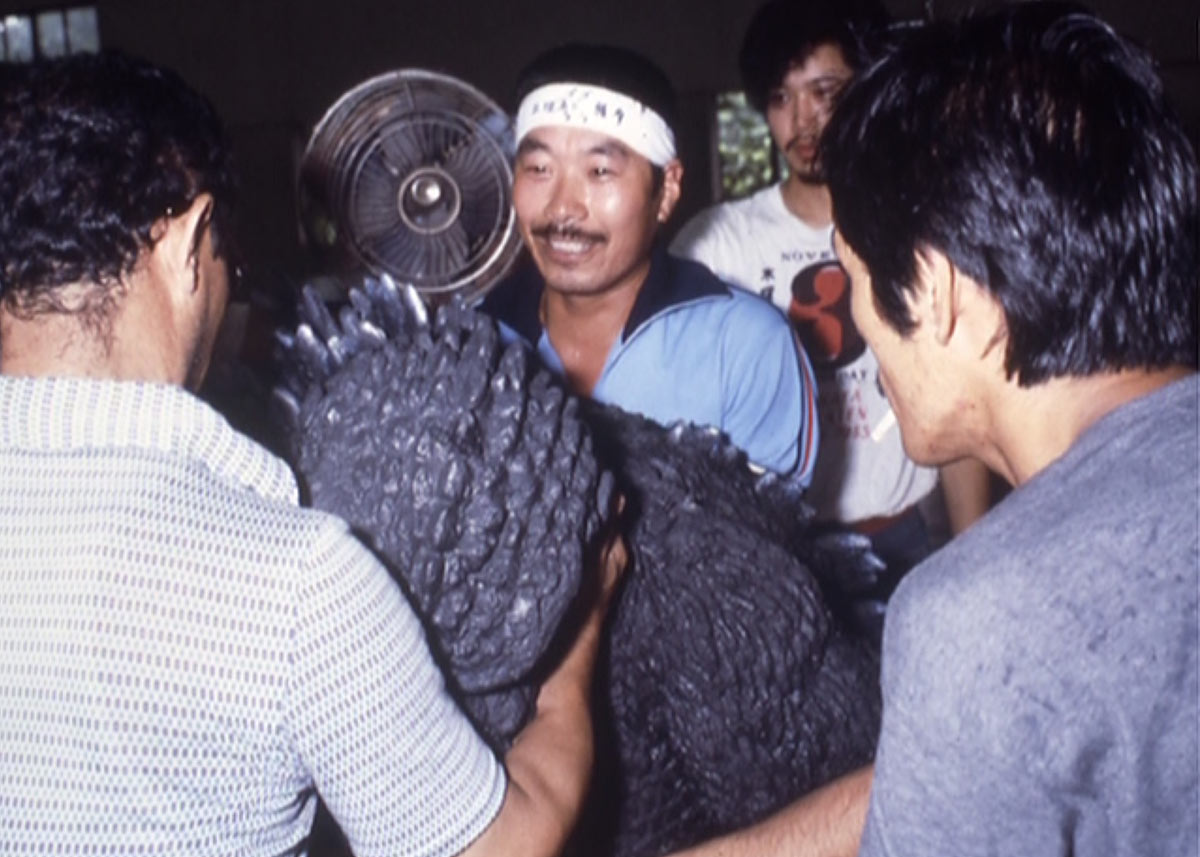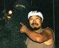 Satsuma as Godzilla on the set of The Return of Godzilla