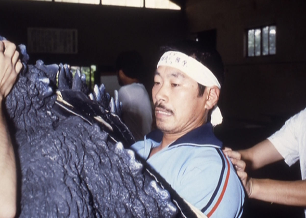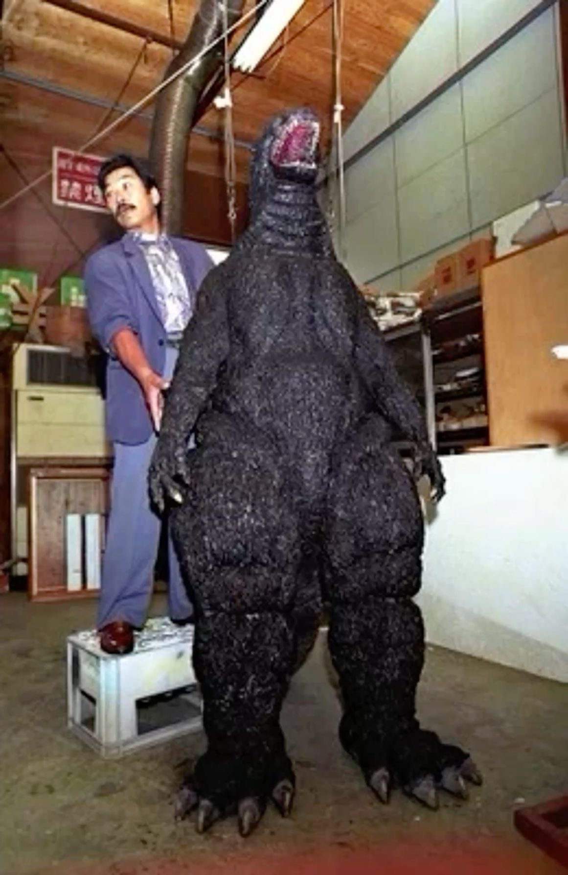 Satsuma as Godzilla on the set of Godzilla vs. Destoroyah