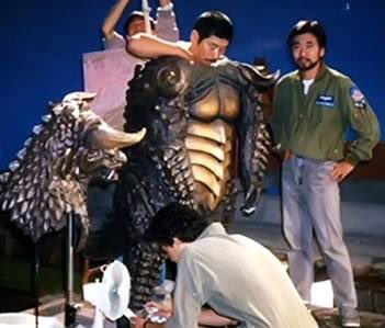 Satsuma on the set of Godzilla vs. SpaceGodzilla