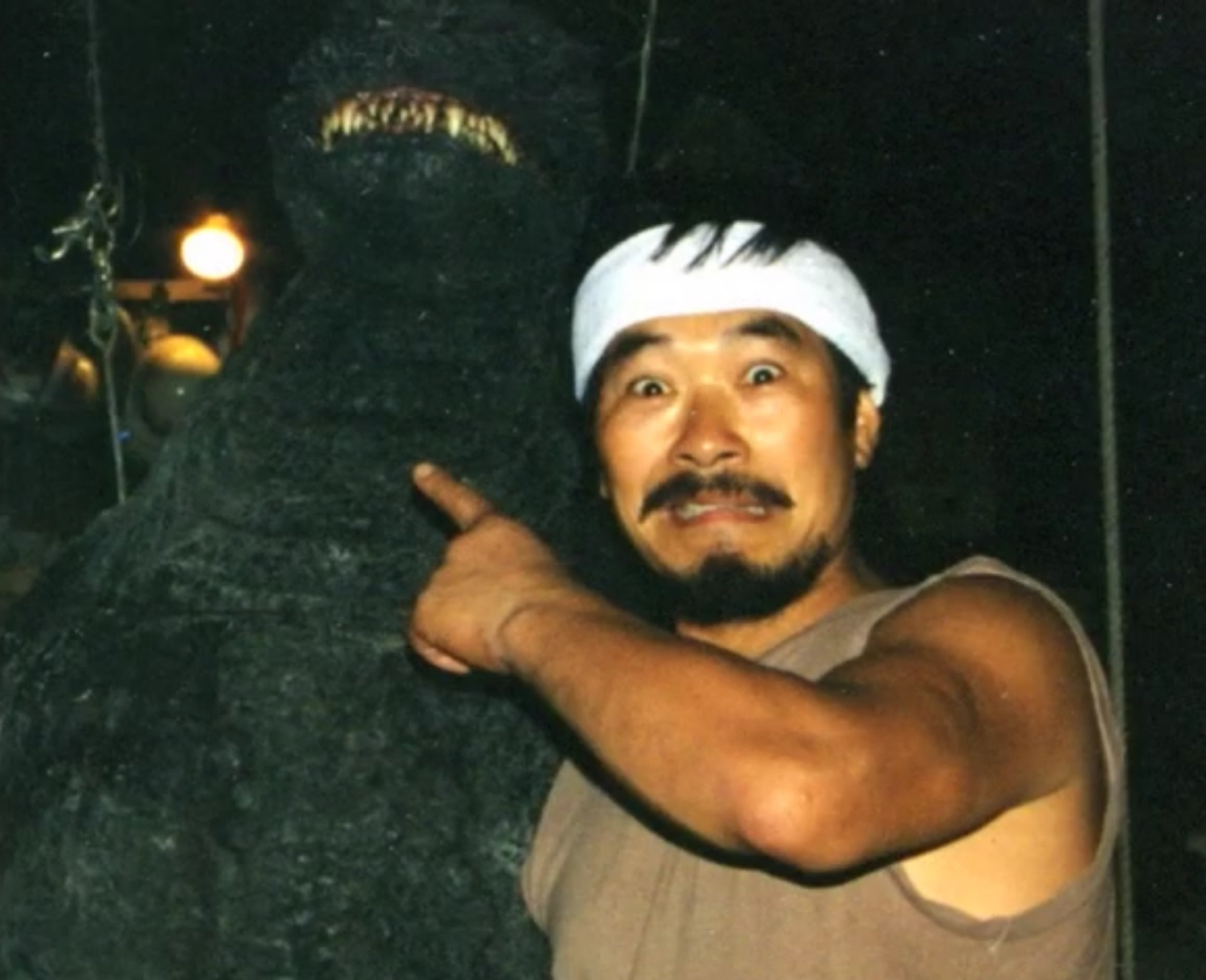 Satsuma on the set of Godzilla vs. Mechagodzilla II