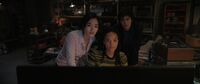 Kentaro took Cate to May. Though not pleased to see him, he convinced her to help, and she brought them to her apartment. May found the first tape encrypted, but quickly cracked it, revealing scores of redacted documents. Kentaro noticed a map resembling the one in Hiroshi's office; after he read the name "Monarch," Cate told them about the agents she saw in San Francisco, and how they seemed to relish documenting the destruction as people were dying. She believed that Hiroshi was working for them, but Kentaro refused to believe it. He fumed to May in Japanese that Hiroshi would still be alive if he had been in Tokyo instead of San Francisco when the Titans attacked. Speaking Japanese in front of him for the first time, Cate retorted that Hiroshi wasn't in San Francisco that day either before recalling how he only returned to the city after the attack, only to abandon her again when she needed him most. Kentaro insisted he must have done everything for a reason, but Cate declared him unforgivable. She then spotted a photo of a woman standing inside a monstrous footprint on one of May's screens: her and Kentaro's grandmother Keiko. "Aftermath"