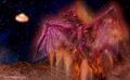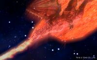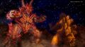 The Fire Dragon immediately rained fireballs from its mouth down on the four monsters. Taigo, his body now in an unstable burning state due to the energy he exhausted, attempted to blast Kilafadoras with his atomic breath, but the dragon dodged the blast as it transformed to flying Kilafadoras in pursuit of Mothra. Kilafadoras quickly caught up with Mothra, and after multiple blasts of its fire breath, Mothra fell back. Just as Kilafadoras attempted to finish Mothra off with another blast, Battra appeared and protected the divine moth. Battra fired his Prism Beams at Kilafadoras and landed a direct hit on the Fire Dragon, causing it to withdraw. Battra chased down Kilafadoras, and the two engaged in a dog fight through space. However, Kilafadoras dodged each of Battra's attacks and severely wounded him with multiple fire balls, leaving his motionless body floating in the void of space.