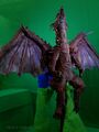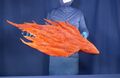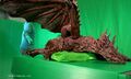 The Kilafadoras prop was molded using a clay prototype, a plaster mold, latex, and urethane pouring.[1] Two puppeteers working in tandem brought the dragon to life.[2] The Gorathdoras prop was roughly 2 meters tall.