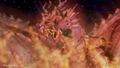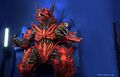 With Battra seemingly defeated, Kilafadoras returned to Gorath and plunged into the hole produced by Mirei's atomic breath. Soon after, the dragon emerged from the crater, now bonded directly with the crystal heart of Gorath. Fragments of rock combined with the dragon and the Gorazynium, transforming them into Gorathdoras - a living embodiment of the star itself. The Demon Star Beast fired beams from its horns, overwhelming both Taigo and Mirei and knocking them to the ground. Eventually, Taigo got to his feet and attempted to battle Gorathdoras, but the monster proved too strong for the Godzilla. Gorathdoras turned to Mirei and blasted her with its horn beams, fully incapacitating her. Angered, Taigo eventually mustered his remaining power into two concentrated blasts, including a full-body blast, destroying Gorathdoras. However, the Demon Star Beast was almost instantly revived thanks to Gorath's crystal heart, and Taigo collapsed due to overexerting himself in his burning state.