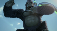 One of the most well-known monsters in all of cinema, Kong made his debut in the 1933 film bearing his name. Though he has been reimagined many times in many different films, Kong is usually portrayed as a gigantic gorilla-like ape residing on a remote island (sometimes dubbed Skull Island) hidden from civilization and inhabited by other bizarre creatures. Typically, Kong is worshiped as a god by the natives living on the island, who often sacrifice young women to him, whom he accepts as his "brides." In the original film and its two remakes, Kong is taken away from his island by an expedition team from the United States and brought back to New York, where he escapes and goes on a violent rampage before climbing a skyscraper, then being gunned down by military aircraft and falling to his death. Toho acquired the rights to use Kong for their 1962 film King Kong vs. Godzilla, where he was drastically scaled up and pitted against Toho's flagship monster Godzilla. Toho made another film featuring Kong, King Kong Escapes, in 1967, where Kong battled an evil robot duplicate of himself named Mechani-Kong. The original King Kong was remade in 1976 by Dino De Laurentiis, and a sequel to this remake titled King Kong Lives was released in 1986. Universal Pictures released their own remake in 2005, directed by Peter Jackson. In 2017, Kong became part of Legendary Pictures and Warner Bros.' Monsterverse after appearing in the film Kong: Skull Island. In this continuity, Kong witnessed the brutal death of his parents at the hands of the Skullcrawlers shortly after his birth, leading him to become the self-appointed guardian of Skull Island. He reappears in the film's 2021 sequel Godzilla vs. Kong, in which he initially enters into conflict with Godzilla but eventually sides with him to destroy the Apex Cybernetics-constructed anti-Titan weapon Mechagodzilla, and in the 2024 film Godzilla x Kong: The New Empire, where he and Godzilla team up again to stop the Skar King's attempt to conquer the surface world.