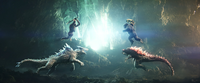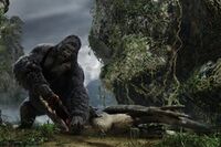 • While Kong is only mentioned in dialogue and shown through stock footage in Godzilla: King of the Monsters, he is included in a piece of concept art featured in The Art of Godzilla: King of the Monsters[28] depicting the film's final scene as one of the kaiju surrounding Godzilla.