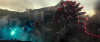 In Godzilla vs. Kong, Kong is consistently bested by Godzilla in combat, and is also harmed by Mechagodzilla. In Godzilla x Kong: The New Empire, the Skar King's Whipslash leaves a cut on Kong's arm, while Shimo's ice beam leaves his hand frostbitten. The latter required medical attention by way of the B.E.A.S.T. Glove.
