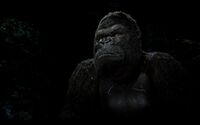 Kong is the last of the species Megaprimatus kong, hypothesized to have branched off from a common ancestor of Gigantopithecus,[2] the largest species of primate ever to live. In an interview with the BBC, director Peter Jackson stated that Kong never knew his parents because they were "probably killed by dinosaurs" when he was still young and that he had siblings which were also deceased.[3] In Cinefex #104, Richard Taylor of Weta Workshop explained of the giant gorilla bones in Kong's lair by stating "We decided to give Kong a graveyard of his ancestors. [...] Gorillas do mourn their dead, and this was where Kong mourned the loss of the only thing that he had social interaction with — it could be his father or mother."[4] The Making of King Kong: The Official Guide to the Motion Picture states that the skull seen among the gorilla remains was Kong's father.[5]