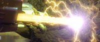 When Kiryu was repaired, his Absolute Zero was replaced with the Type-4 Triple Hyper Maser Cannon (4式3連装ハイパーメーサー砲 4-Shiki 3 Rensō Haipā Mēsā-hō).[14] While this attack was undeniably less powerful than the Absolute Zero, it proved crucial in defeating Godzilla, as Kiryu used it in conjunction with his Type-99 Double Maser Cannon to strike Godzilla's chest wound after it was reopened by the Spiral Claw, which critically injured Godzilla and left him helpless as the Mothra larvae encased him in silk. The hatch covering the Hyper Maser is equipped with claws that allowed Kiryu to restrain Godzilla and carry him out to sea.