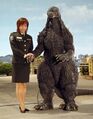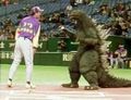 Godzilla and Kiryu at a baseball game