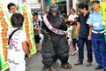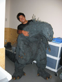 A close-up shot of the SOSGoji animatronic