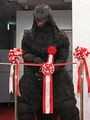 The SOSGoji and 2003 Mothra imago prop on display in Kagoshima in 2017