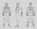 Hayami looks similar to the basic Guyborgs, but with a sleeker helmet and large shoulder pads. His profile on Crown's blacklist suggests he may be similar to the "Guyborg B" design, and concept art depicts Guyborg Bs with helmets much closer in design to Hayami's than to the modified Guyborg A helmets seen in the final product.