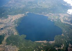 Lake Ikeda (池田湖 Ikeda-ko) is a caldera lake located 40 kilometers south of Kagoshima city on Kyūshū Island, Japan. It appears in the 2001 Godzilla film, Godzilla, Mothra and King Ghidorah: Giant Monsters All-Out Attack.