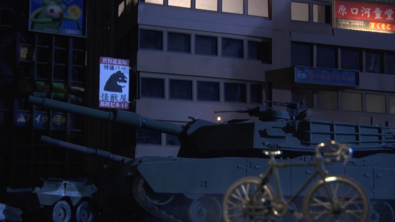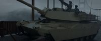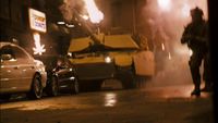 When Godzilla was sighted in San Francisco Bay, several M1 Abrams were deployed onto the Golden Gate Bridge to open fire on the monster as civilians attempted to escape the city by crossing the bridge. When Godzilla surfaced, the tanks began firing at him, though their shots appeared to have no effect. One tank shell struck Godzilla directly in his gills, causing him to reel back in pain and smash through the bridge, breaking it in half.