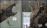 In 1996, as Aaron Brooks and the rest of the second Monarch expedition to Skull Island explored a Dutch shipwreck on the island, a Magma Turtle was present in the distance.