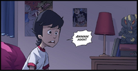 Maguma appeared on one of the posters Cedric Nishimura had hanging on a wall in his bedroom, visible after he woke up from a nightmare about King Ghidorah.