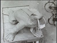 Maguma's head was modeled by Teizo Toshimitsu, while his body was modeled by the Yagi brothers, Kanju and Yasuei. They made the suit's structure from scratch, using wire netting, cloth, and sponge.[11] The body and limbs were adhered using a mix of latex and sawdust, with its flippers molded separately.[9] The suit was a brown color, with an apparatus installed in its eyes to allow them to glow blue. Fire-retardant material was applied to the suit in order to prevent it from catching fire from the flames given off by the jet pipes during filming.[3] Keizo Murase sculpted Maguma's tusks from polyester resin, his first-ever time using this material, as he found it was the best way to make them appear sharp. Eiji Tsuburaya was impressed, initially believing the tusks were made from ivory before Murase explained that he had used a new material, much to Tsuburaya's delight. A 2-shaku (Japanese foot) Guignol or hand-operated puppet of Maguma was employed for close-ups and fine movement. This Guignol was operated by modeling staff member Eizo Kaimai.