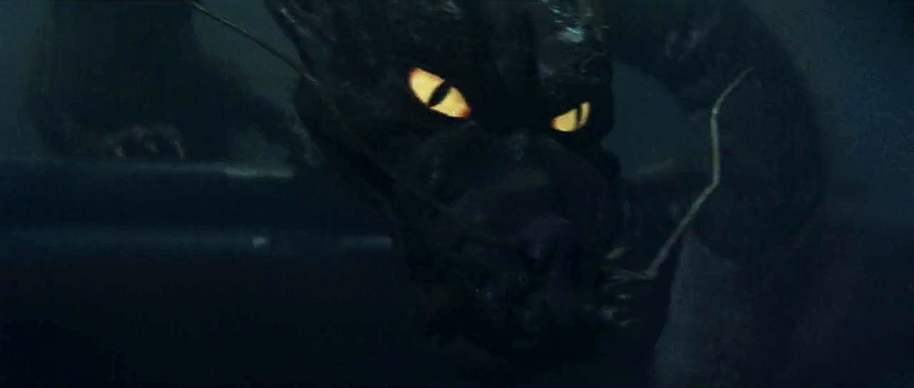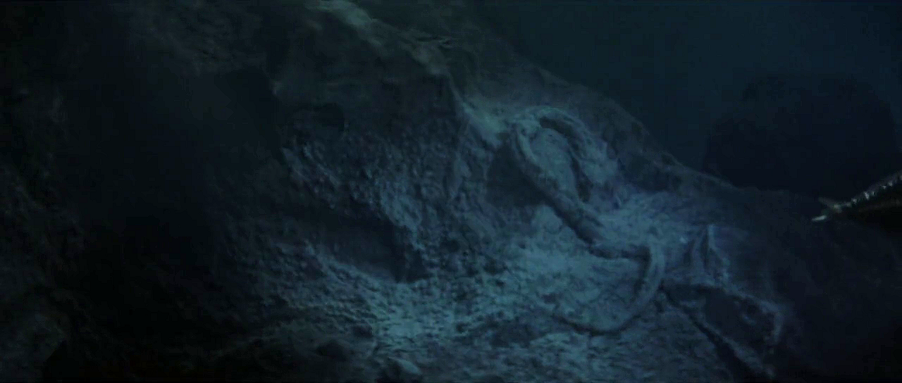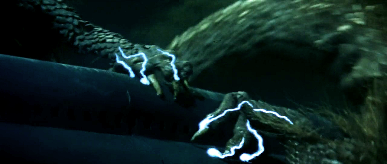 Godzilla strangles Manda in a cut scene