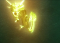 Manda is shocked by the Gotengo's Electric Coil.