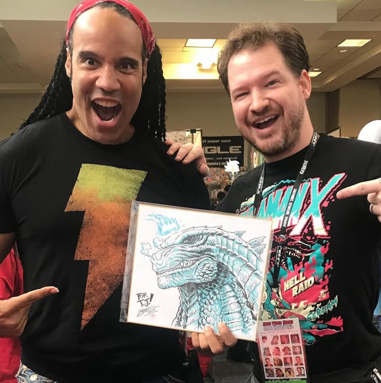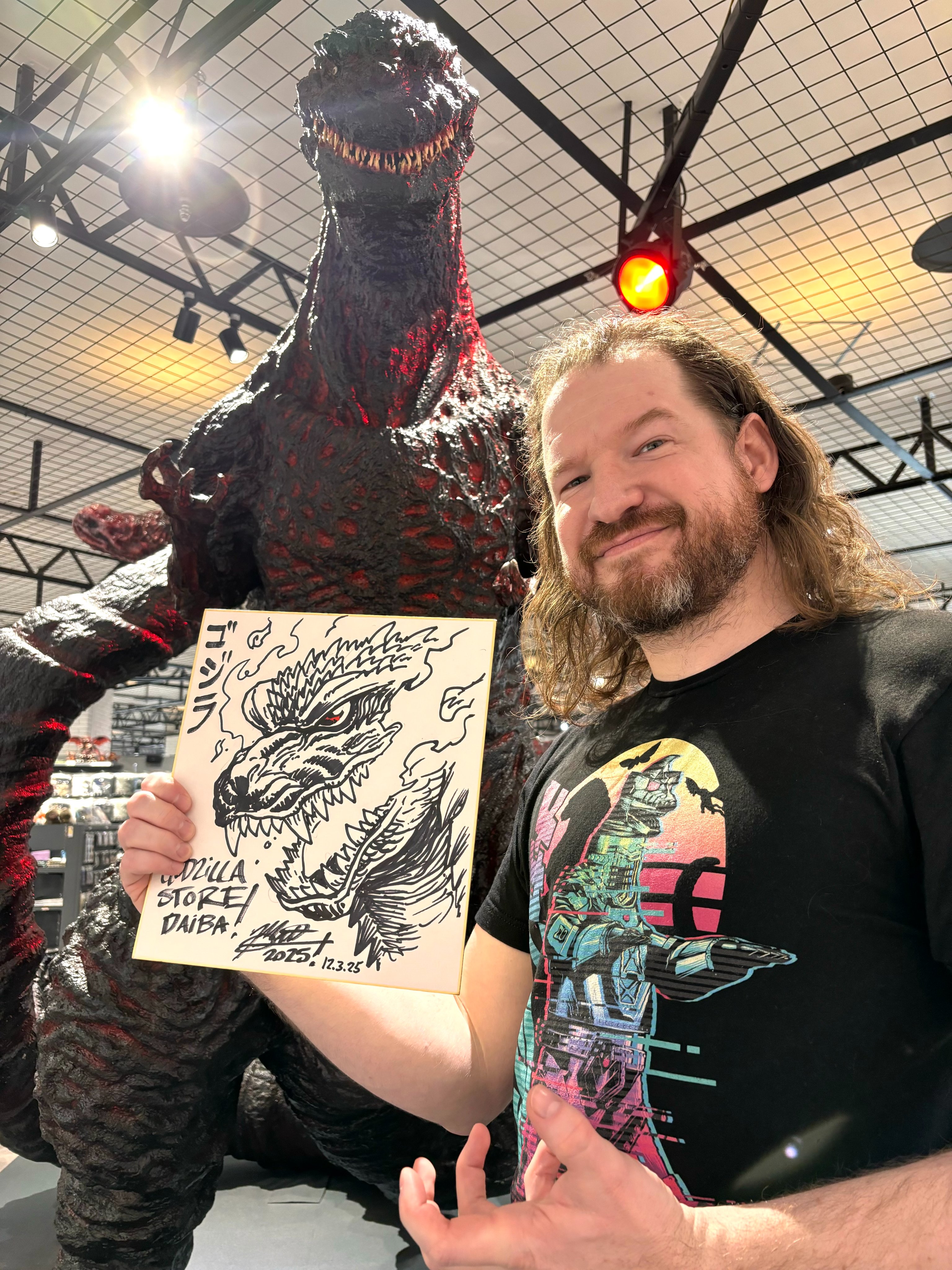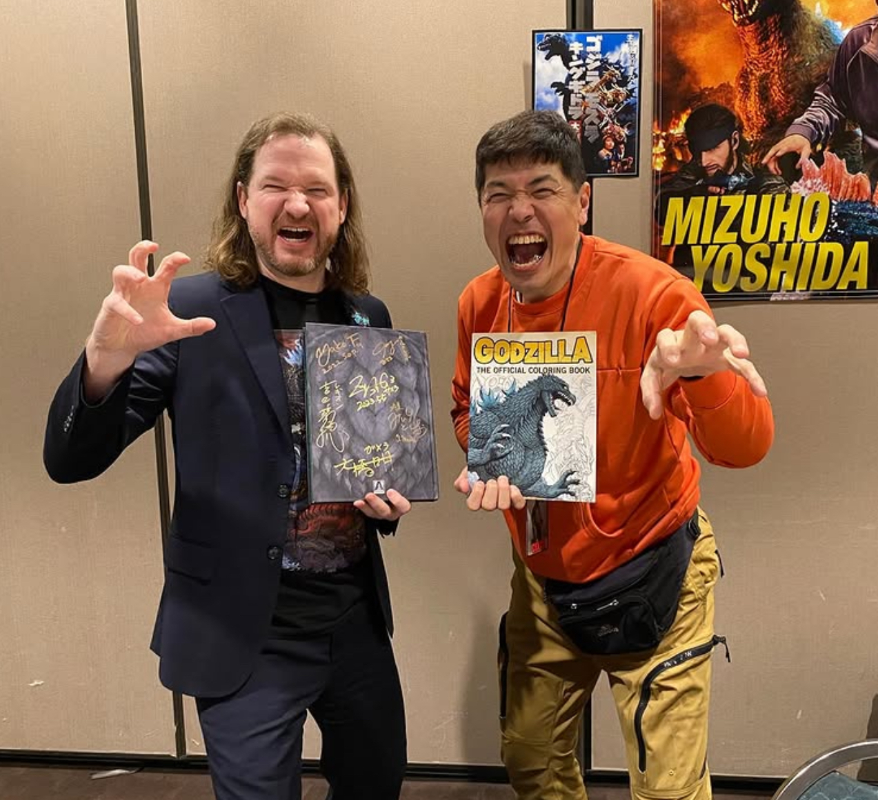 Matt Frank and Godzilla: King of the Monsters director Michael Dougherty meeting at the Godzilla Minus One U.S. premiere