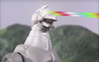 Mechagodzilla can fire rainbow-colored beams from its eyes, similar to the Showa Mechagodzilla's Space Beams. They were able to destroy Mecha-King Ghidorah's weakened head when combined with Godzilla's atomic breath and King Caesar's lightning attack, and one of Hyper Mecha-King Ghidorah's heads when combined with blasts from the Panna Torte and Tart Coupe. They also successfully destroyed Dororin's entire body each time they were fired at the shapeshifter, though the monster quickly reformed itself on each occasion. In the final story arc, they were combined with Mechagodzilla's mouth laser, the lasers from both the Panna Torte and Tart Coupe, Mothra Leo's antennae lasers, and the atomic breaths of both Godzilla and Junior to destroy the warp gate. However, they were incapable of causing harm to Godzilla himself while he was possessed by SpaceGodzilla's ghost, and merely irritated him in the Lucas arc.