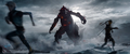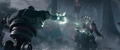 Mechagodzilla HUD concept with Mechagodzilla's Japanese name and heads of Kiryu in the upper and lower corners by Andrew Popplestone