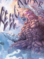 Long ago, Megalon emerged from the Earth and began to decimate a village under the protection of King Caesar with his Geothermal Napalm bombs. As he ravaged the village, King Caesar arrived with a flying kick to Megalon's face. The ensuing fight between the two kaiju resulted in so much death and destruction that more monsters began rising up in efforts to correct this disruption of the cosmic balance. Eventually, the great battle was interrupted by the arrival of a Devonian war ship that crashed into the ocean, sending Megalon and King Caesar falling into the Earth's crust. Ultimately, Megalon would never be seen again. He was included among the "fire" monsters in a cave mural on Infant Island.