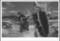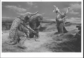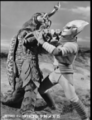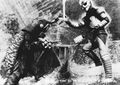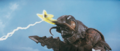 Megalon's horn is broken off by an uppercut from Godzilla.