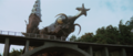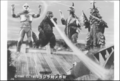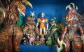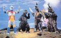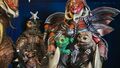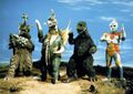 The flying Gigan, Megalon, and Zone Fighter puppets
