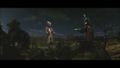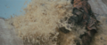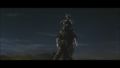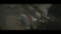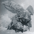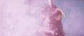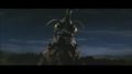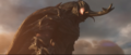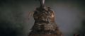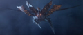 Megalon's eyes dim after the top half of his corpse comes to a halt from drifting on his wings