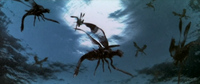 The Meganulon in Rodan use their claws to stab their victims to death. In Godzilla vs. Megaguirus, the Meganulon appear to prefer to use their mandibles to kill their victims instead, although they still use their claws to grab prey.