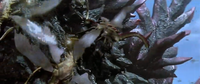 Several parasitic Meganulon lived on Godzilla Ultima's skin as he rampaged through Tokyo, with some menacing Yun Arikawa after he crash-landed on Godzilla's skin.