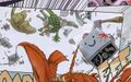 According to artist Phillip Johnson, the robot "was supposed to be N.I.G.E.L. with a handgun but our editor said not to include too many [E]aster eggs."[1]
