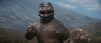 Anguirus, Rodan, and Mothra led Gabara to the edge of a cliff where Mothra tripped Gabara, allowing Minilla to knock the bully into the water with their heat ray. Though victorious, the group took pity on the helpless Gabara thrashing about in the water and decided to throw them a vine to rescue them. Humbled, Gabara decided to stop tormenting the other monsters and instead began playing with them.