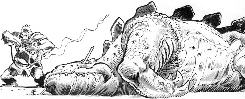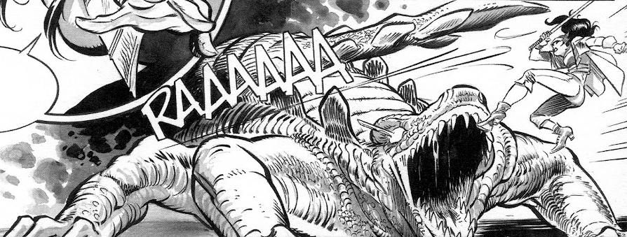 Mongo is a retroactively-evolved dinosaur-like creature who debuted in the fourth issue of The Kong Crew by Eric Herenguel in 2022. He was blinded and enslaved by a group of humans called the Amazons.
