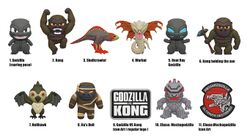 The Godzilla vs. Kong series of 3D foam figural bag clips includes:
