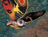 The name "Mothra" is the suffixation of "-ra" (a common last syllable in kaiju names) to "moth." Since the Japanese language does not have dental fricatives, it is approximated "Mosura" in Japanese. Originally, Mothra's name was approximated in English as "Mosla," but it was later corrected to "Mothra" by the time of the release of her debut film[1]. In the American dubbing and various posters for Mothra vs. Godzilla, Mothra is also referred to as "The Thing." She is among Toho's most popular characters, primarily among female fans, and she has appeared in every Godzilla film era. Toho even honored Mothra with the title "Queen of Monsters" for the soundtrack and home video releases of Rebirth of Mothra, illustrating her proximity in status to Godzilla himself. This subtitle is also used for her in Godzilla: King of the Monsters.