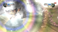 The Elias called Mothra Leo to the Nilai-Kanai Temple to rescue a group of children searching for its ancient treasure from the monster Dagahra. Dagahra proved more than a match for Leo, and defeated him with a combination of his own attacks and by summoning a swarm of Barem to attach to Leo and drain his energy. The Elias and their friends learned that the treasure of the Nilai-Kanai civilization was the small monster Ghogo, which they created to destroy Dagahra, their previous creation. Ghogo merged his life force with the battered Mothra Leo, allowing him to transform into the more powerful Rainbow Mothra. Rainbow Mothra battled Dagahra once more, making use of his newfound ability to transform into AquaMothra to engage him on equal footing underwater. Ultimately, he split apart into countless MicroMothras which swarmed inside Dagahra's body, destroying his Barem-producing organs and incapacitating him. Rainbow Mothra then reformed and carried the motionless Dagahra into the air before dropping him onto the Temple, which exploded.